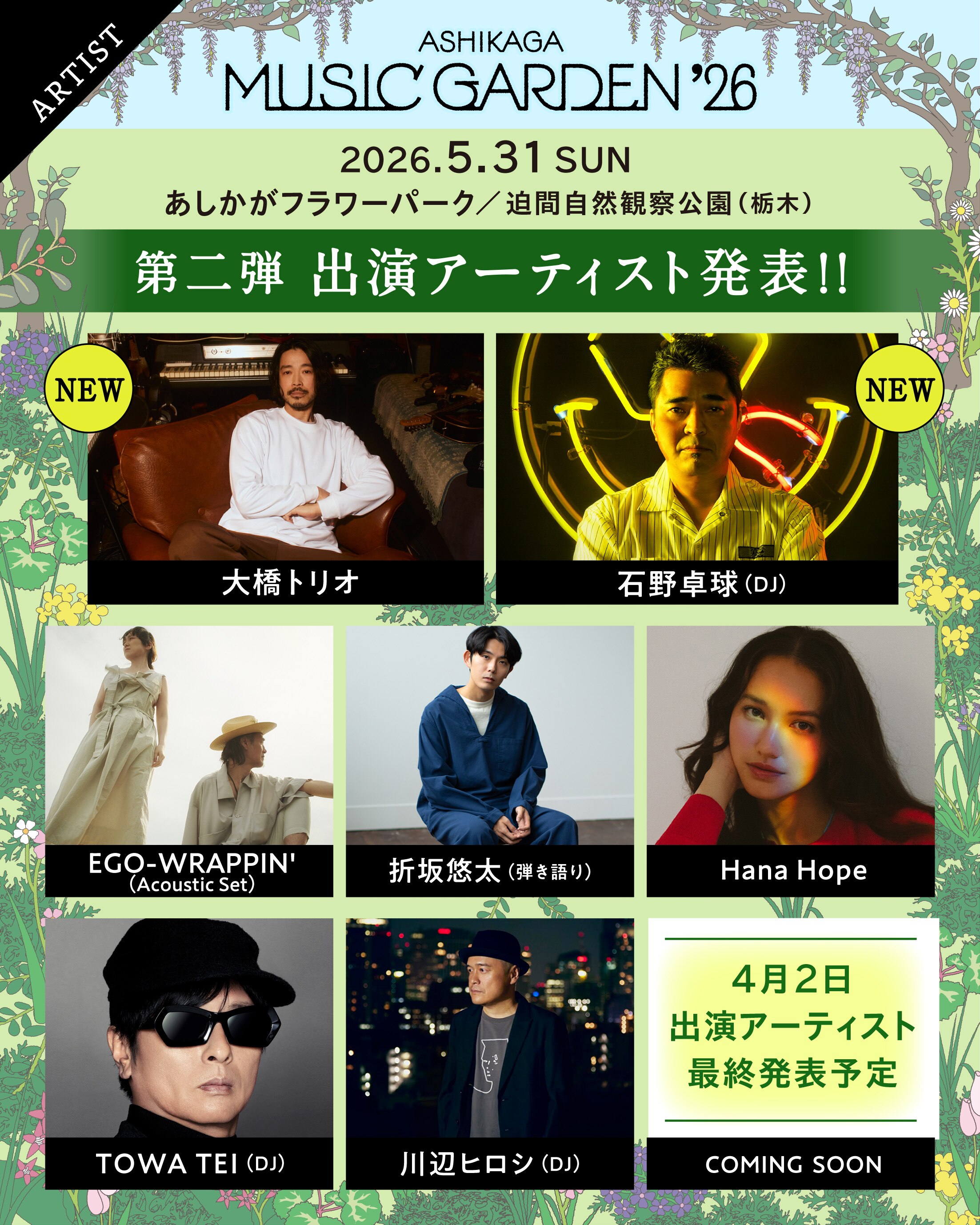 「ASHIKAGA MUSIC GARDEN'26」 に大橋トリオの出演が決定しました❗️